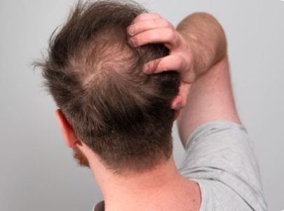 Male pattern baldness begins with a receding hairline or thinning at the crown. This happens because certain hair follicles become sensitive to DHT. Over time, these follicles shrink and produce finer, shorter hair until growth stops completely.